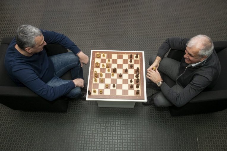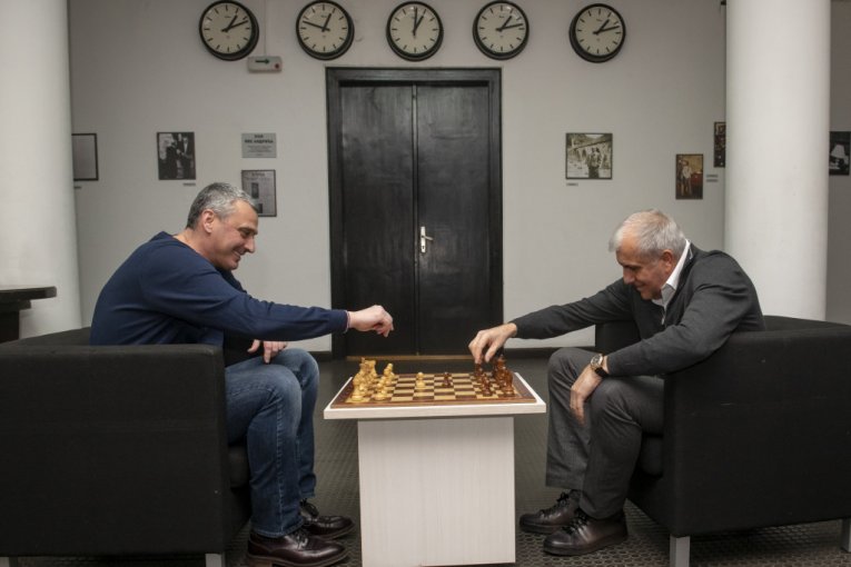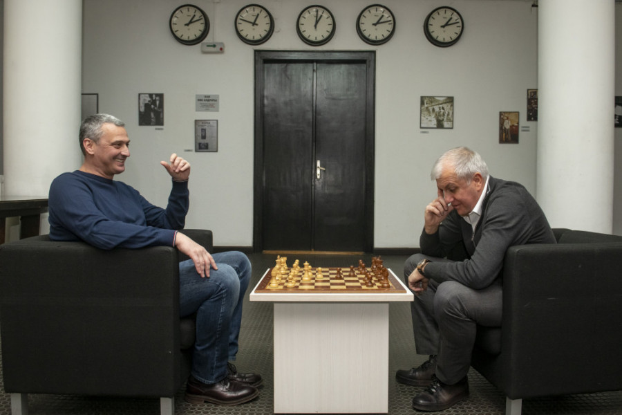 Uprkos zgusnutom rasporedu i velikim obavezama, Željko i Dejan odvojili su vreme i za kratak intervju, u kom su im postavljena identična pitanja. Žoc je na snimanje došao peške, tvrdeći da ga je usput samo jedan par zaustavio i tražio fotografiju, dok je Dejo imao problema sa saobraćajnom gužvom u Beogradu. Različite principe pokazali su i za šahovskom tablom, a meč je završen remijem. Duga je sezona, sačekaćete pravi epilog na košarkaškoj tabli.