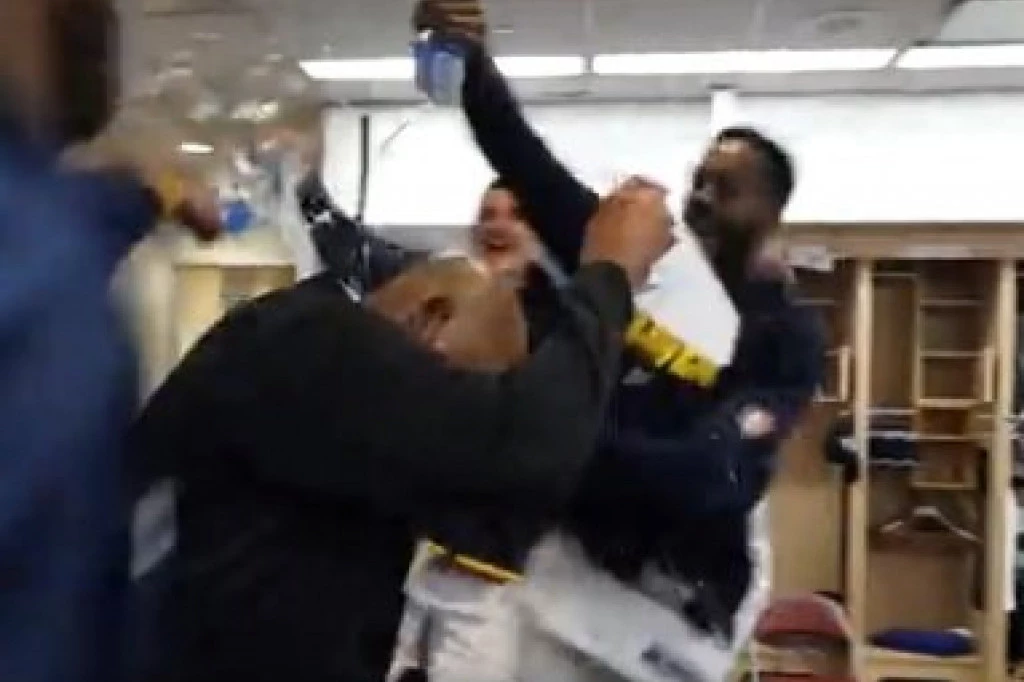 Popaj je zasut vodom po uslaku u svlačionicu, a srpski košarkaš ga je zagrlio i čestitao na odličnom vođenju utakmice.