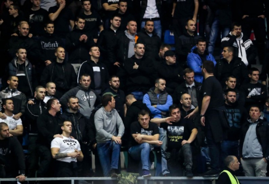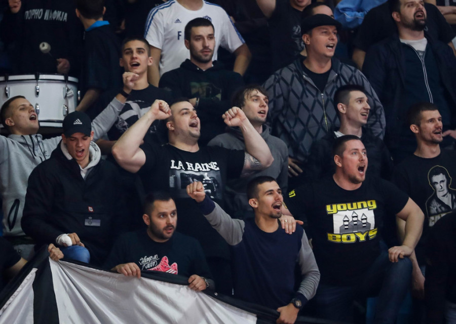 Na jednom strani u beogradskom Pioniru bili "grobari" okupljeni oko grupe Alkatraz. Na drugoj tribini bila je druga frakcija pristalica crno-belih, u kojoj je bio i Miloš Radisavljević Kimi.
