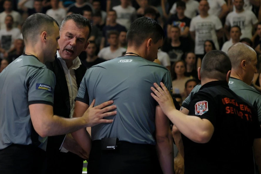 Matej Boltauzer je potom sa ostatkom arbitara Urošem Nikolićem i Milanom Nedovićem otišao sa parketa u svlačionicu.