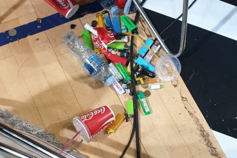 Ovoga puta nažalost ne. Stotine ubačenih upaljača, mobilni telefon koji je umalo pogodio trenera Dejana Radonjića, kese sa pljuvačkom kojima su gađani članovi delegacije KK Crvena zvezda tokom zamračenja hale (inače prenatrpane i preko kapaciteta u kojoj je parket postao klizalište), topovski udari, sramni transparenti reprezentativcu naše zemlje, desetine uvreda, brojna upozorenja, čaše sa pićima, lutke na naduvavanje, konačno i staklena flaša kojom je pogođen jedan od sudija ove utakmice…
