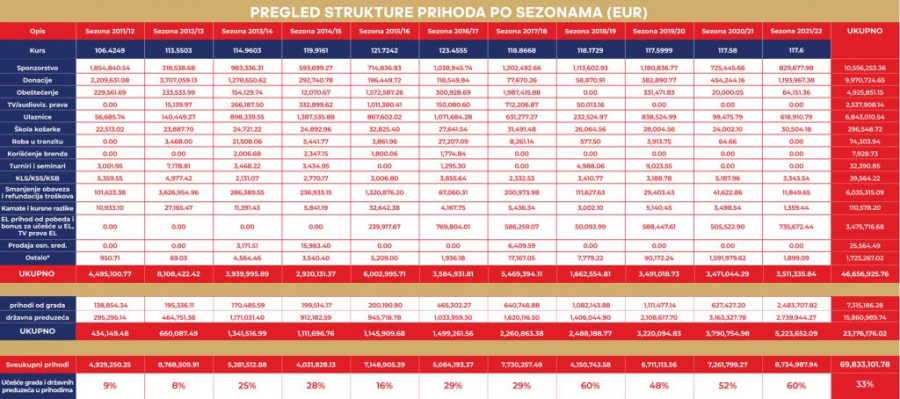 Na 12 – godišnjem nivou to učešće iznosilo je 33 procenata ukupno do sada za 11 sezona, imajući u vidu da sezona 2021-2022 još nije završena (završava se 30.06.2022. godine).