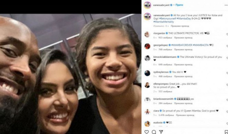 Supruga pokojne NBA zvezde Kobija Brajanta, dobila je na sudu ogromnu odštetu na osnovu tužbe zbog procurelih fotografija helikopterske nesreće 2020. godine u kojoj su poginuli Vanesin muž i njihova ćerka Đijana.