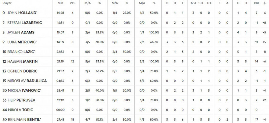 Najefikasniji u redovima crno-belih bio je Kevin Panter koji je zabeležio 26 poena, sledi Zek Ledej sa 23, a dvocifreni učinak ostvarili su i Matijas Lesor i Džejms Naneli koji su postigli 19, odnosno 13 poena.
