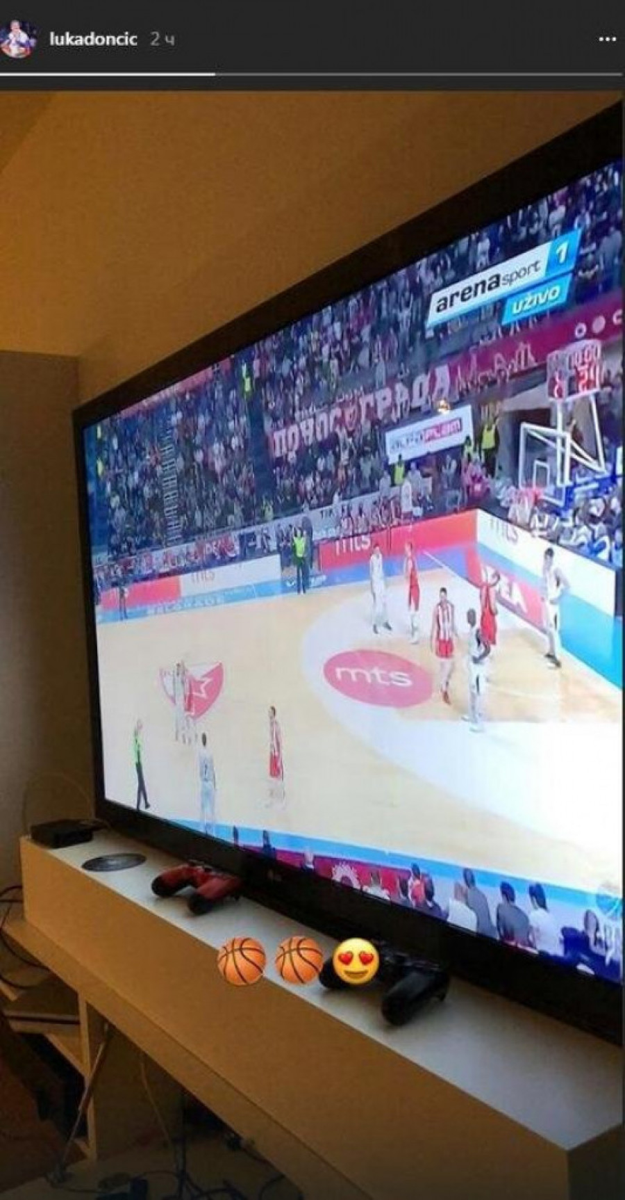 Foto: www.profimedia.rsSlovenački reprezentativac Luka Dončić nije želeo da propusti najveći meč srpske košarke, a možda i ABA lige, pa je na svom "Instagram" profilu objavio fotografiju gde se vidi da putem TV prenosa posmatra meč večitih rivala.