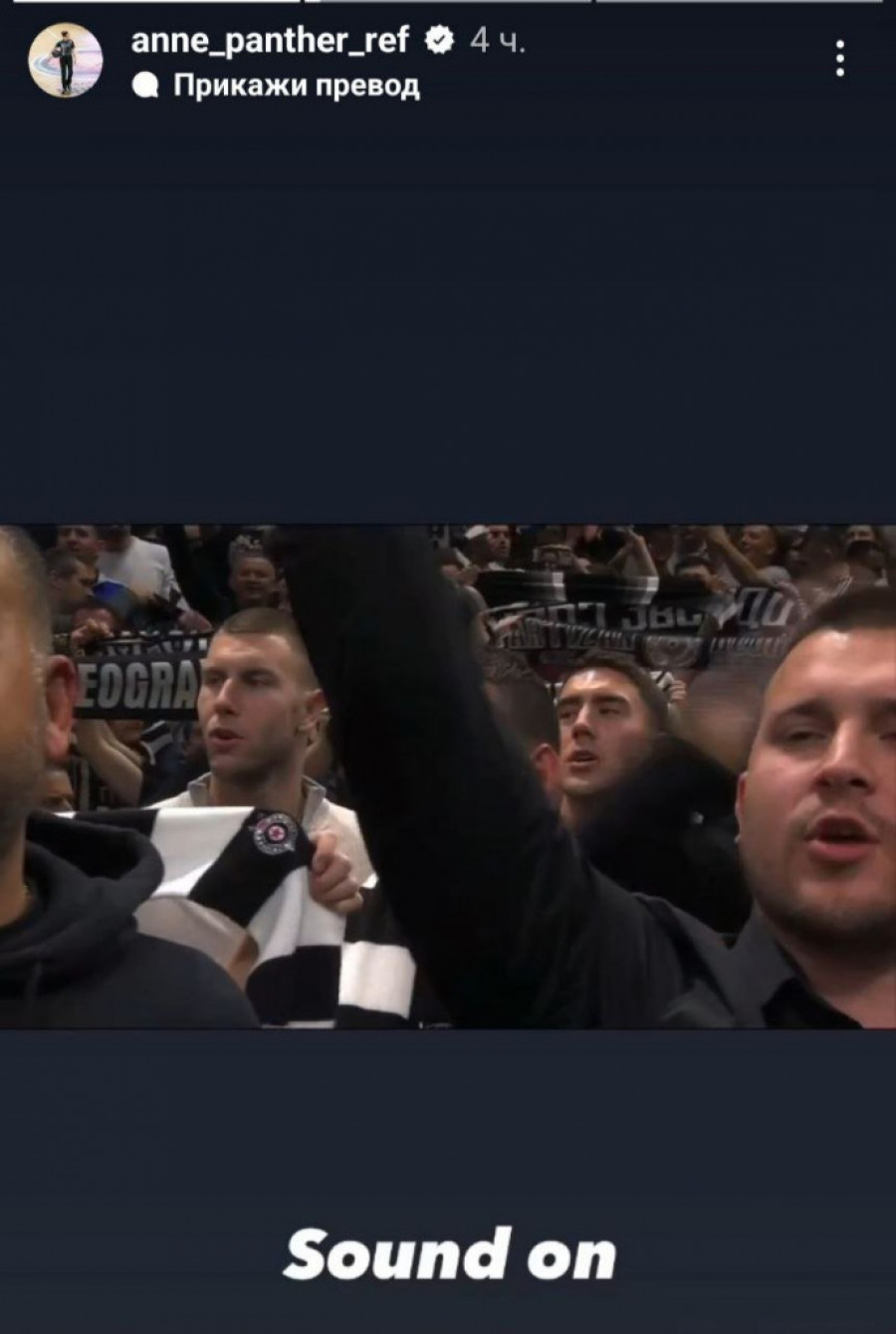 Ipak, dan nakon utakmice, Ana Panter se oglasila na Instagramu, gde je objavila storije na kojima se nalaze navijači "parnog valjka", koji su pred meč napravili atmosferu za pamćenje. Na delu ovih snimaka se vide i fudbalski reprezentativci Srbije Dušan Vlahović, Nikola Milenkovović i Strahinja Pavlović. Takođe, na storijima se nalazi i poruka "uključite zvuk".