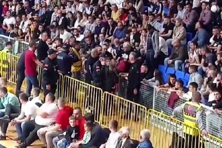 Derbi odloženog meča 22. kola AdmiralBet ABA lige između Budućnosti i Partizana obeležila je nemila scena na tribinama "Morače".