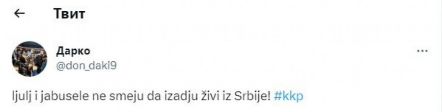 - Ljulj (Serhio) i Jabusele (Geršon) ne smeju da izađu živi iz Srbije! - smatra korisnik Tvitera koji se potpisuje kao Darko.