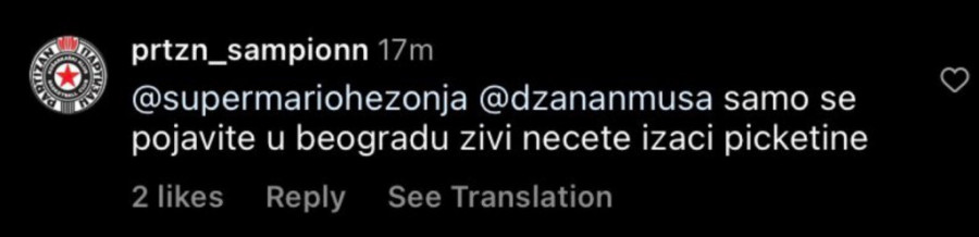 - Mario Hezonja i Džanan Musa, samo se pojavite u Beogradu, živi nećete izaći - piše u jednom od mnogih komentara navijača Partizana.