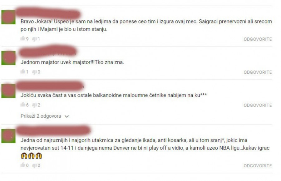 "Bravo Džoker", "Realno Jokić je košarkaška veličina, Denver bez njega ne bi ni primirisao naslov. Jokić je jedan od najboljih belih igrača ikada", "Cela dvorana skandira: "MVP!" Eto ko je Jokić! A on, kao da se ništa ne dešava, skroman s detetom na ramenima i šetucka okolo. To je ona stara: "U pobedi se ne uzvisi, u porazu se ne ponizi!" Svaka čast, primer za svakoga!", samo su neki od komentara.