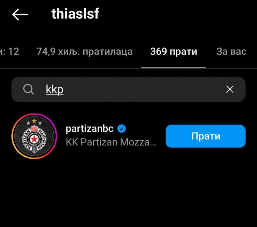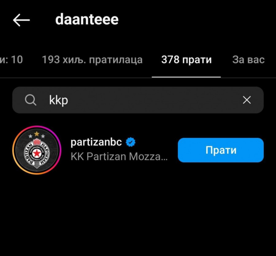 Naime, Panter je na Instagramu otparito zvanični profil KK Partizan!