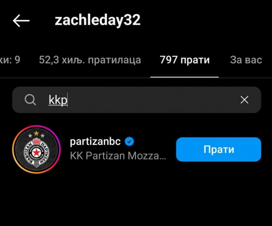 PUKLA LJUBAV: Miljenik grobara otpratio Partizan sa Instagrama! Da li ovo znači da napušta Humsku?