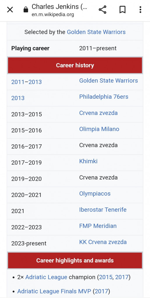 Američki košarkaš Čarls Dženkins je prethodnu sezonu proveo nastupajući za FMP iz Železnika, a sudeći po poznatom sajtu "Vikipedija", naredne će nositi dres Crvene zvezde Meridianbet.