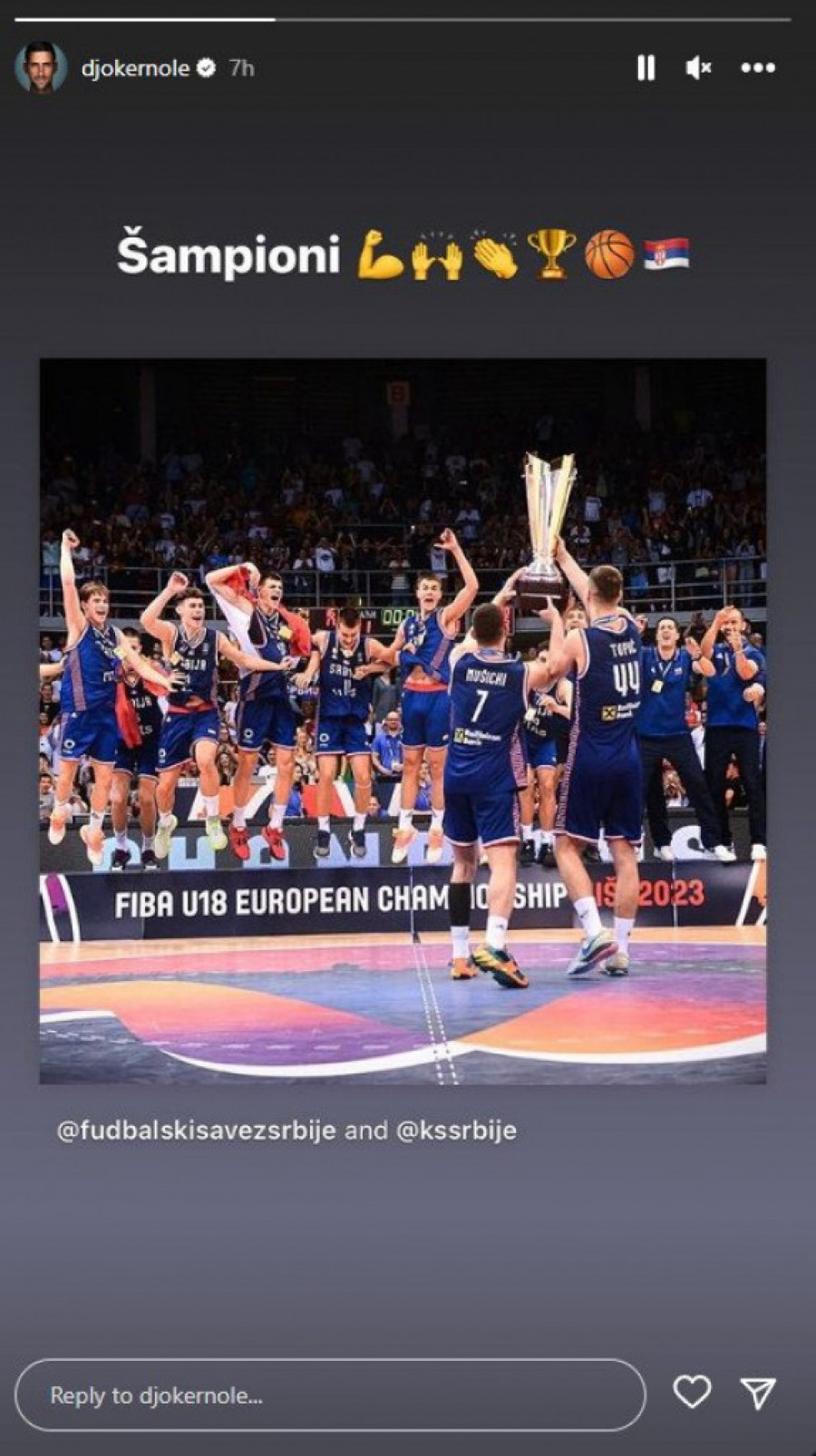 Uspeh mladih košarkaša se pročuo, a jedan od onih koji je uputio javnu čestitku "orlićima" je bio i Novak Đoković, jedan od najboljih sportista u istoriji.