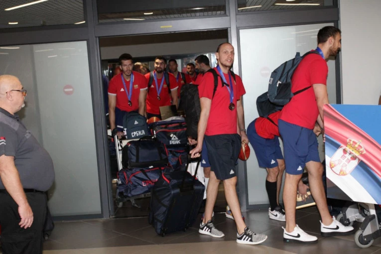 Košarkaši Srbije, koji su na Svetskom prvenstvu u Manili, osvojili srebrnu medalju, stigli su kasno noćas u Beograd, gde ih je, na aerodromu "Nikola Tesla", dočekalo nekoliko stotina navijača.