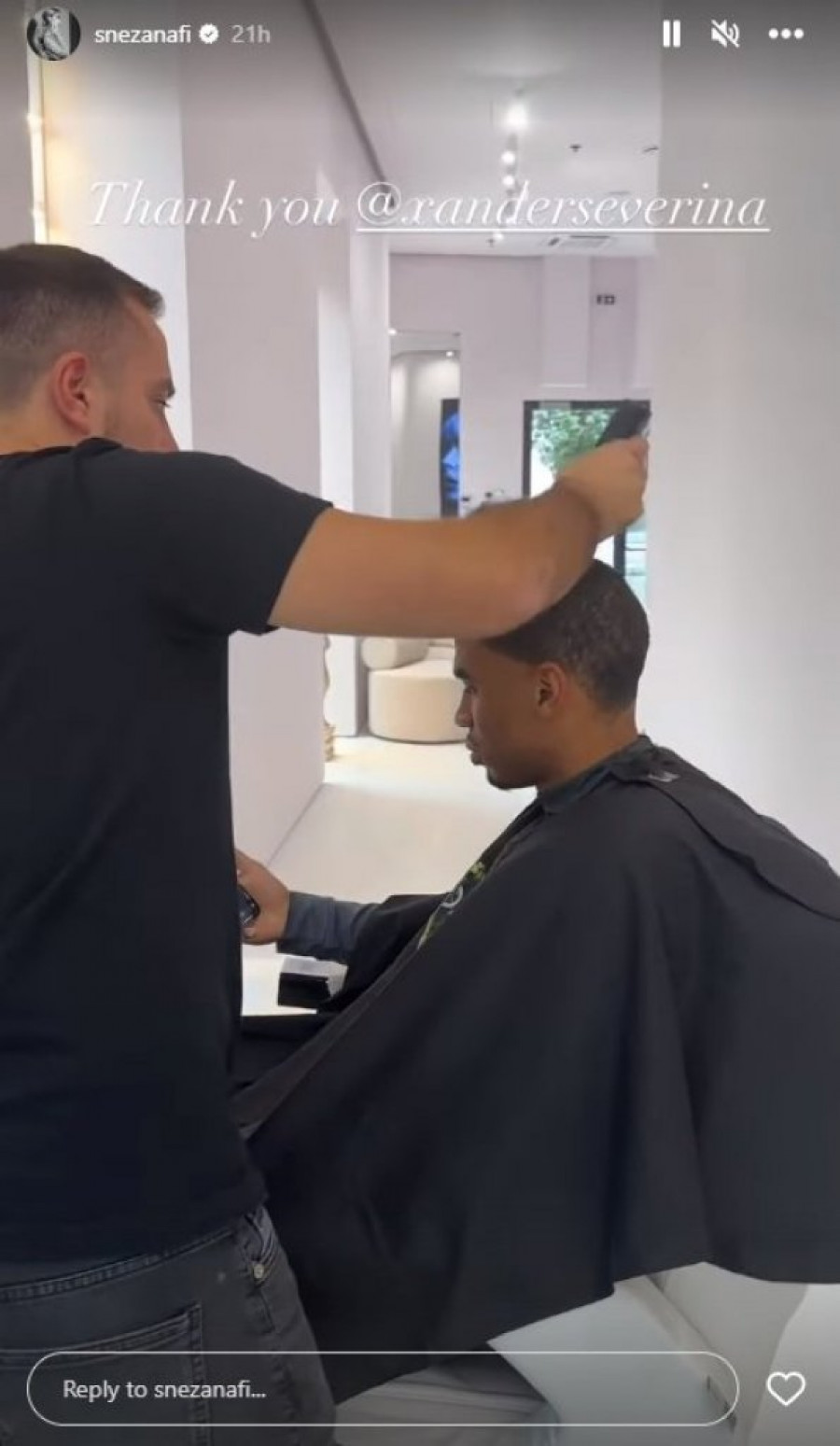 Da se Severina šiša u njenom salonu Sneža je potvrdila objavama na društvenim mrežama i zahvalila se fudbaleru Partizana na ukazanom poverenju. Baš kao što je uradila i u slučaju Luke Adžića, nekadašnjeg prvotimca Zvezde a sada Čukaričkog.