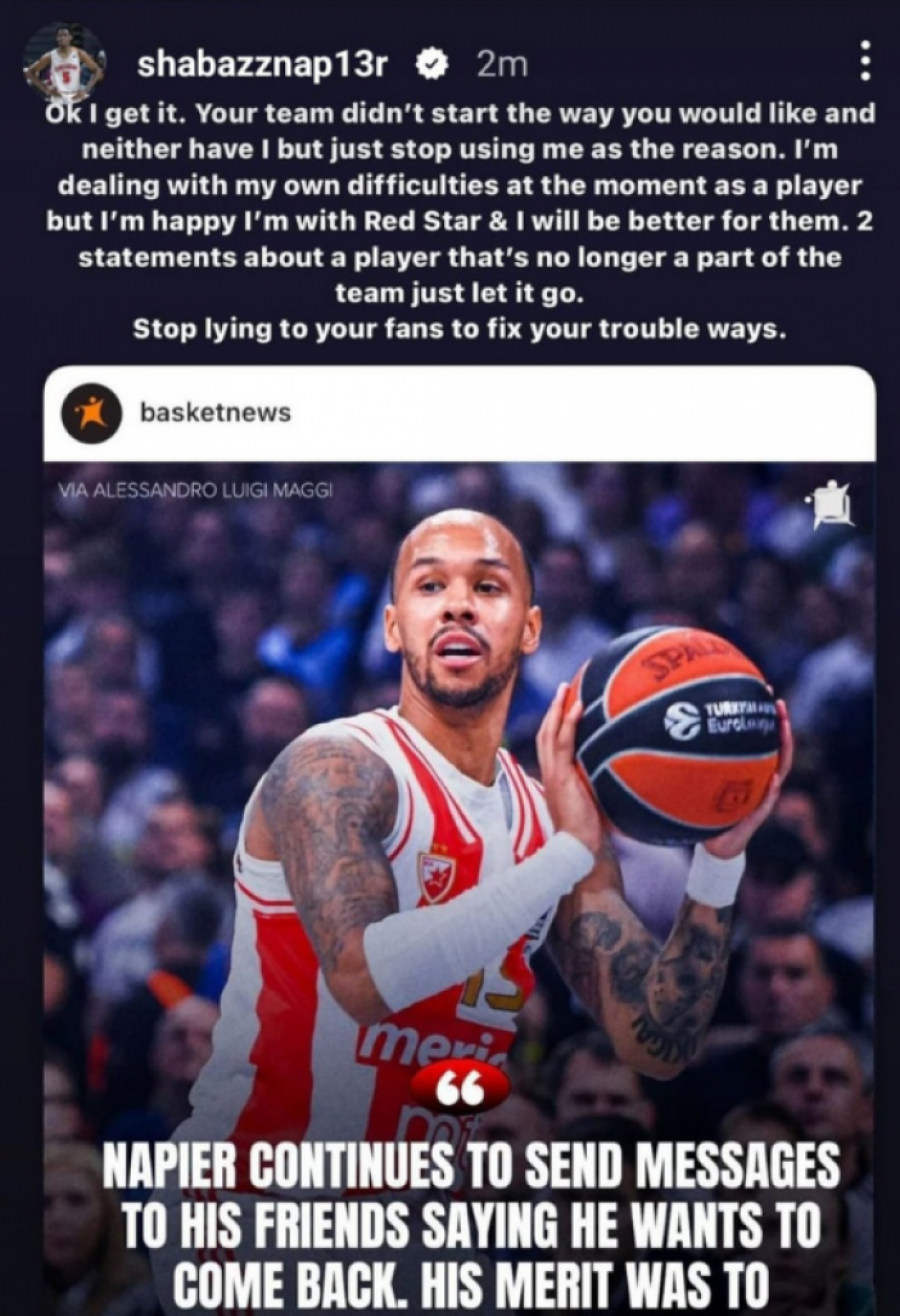 Košarkaši Crvene zvezde Meridianbet dočekuju od 20.30 Armani u desetom kolu Evrolige, a duel u Areni biće zanimljiv i zbog konflikta koji je nastao između tremera italijanskog tima Etorea Mesine i košarkaša crveno-belih Šabaza Nejpira. Italijan je pre nekoliko dana uvredljivo govorio o američkom beku koji ih je letos napustio jer navodno nije dobio tri puta veću platu, bar su tako preneli italijanski mediji, i prešao na Mali Kalemegdan.