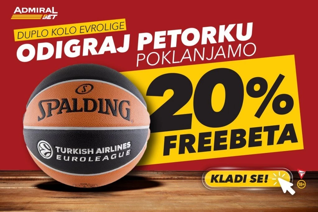 Naravno, možete kladiti i na to da obe ekipe postižu po koš u prvom minutu, pored standardne ponude za poene/skokove/asistencije evroligaških igrača, a tokom trajanja duplog kola Evrolige 20% freebeta će biti dodeljeno na svaki tiket odigran u AdmiralBetu, koji sadrži opklade na učinke za 5 ili više evroligaških igrača.