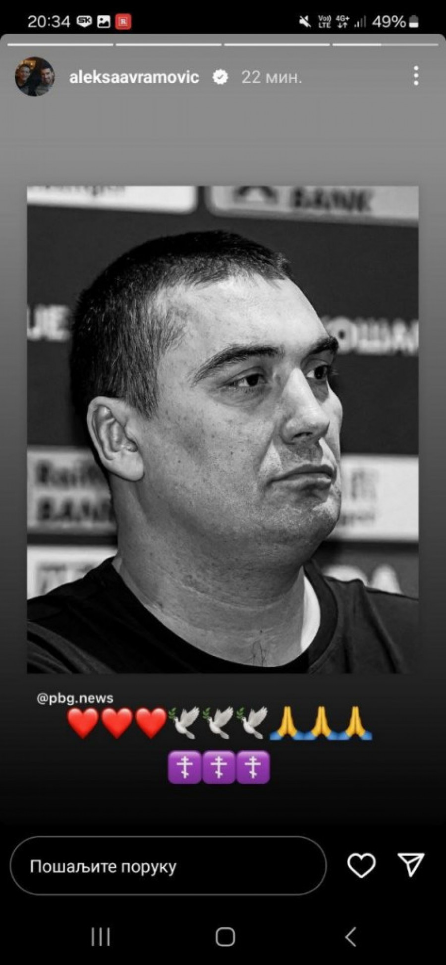 Aleksa Avramović je na svom Instagram storiju okačio sliku gde odaje počast slavnom košarkašu.