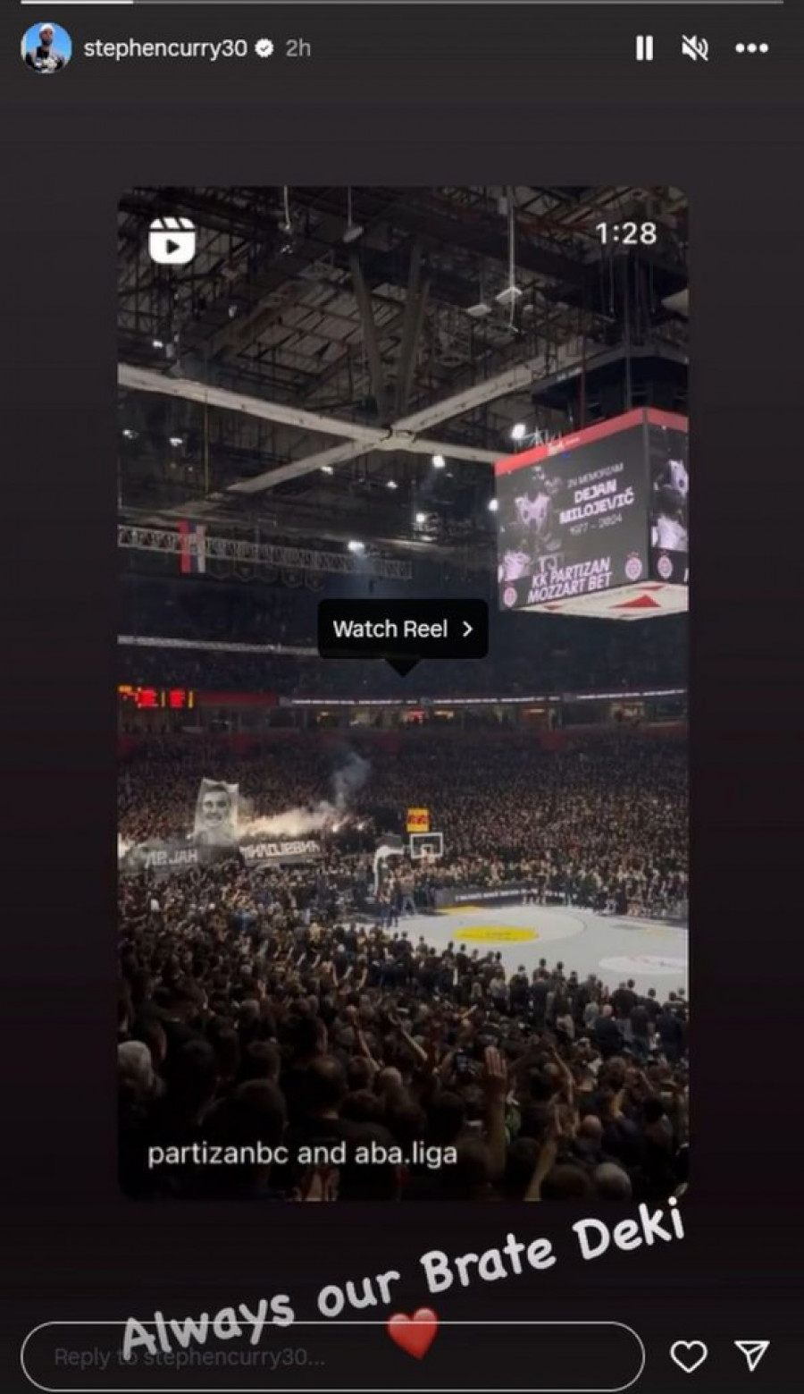 Sjajni plejmejker Golden Stejta putem svog Instagram profila okačio snimak sa utakmice Partizan - Mega i ostavio kratak komentar "zauvek naš brate Deki".