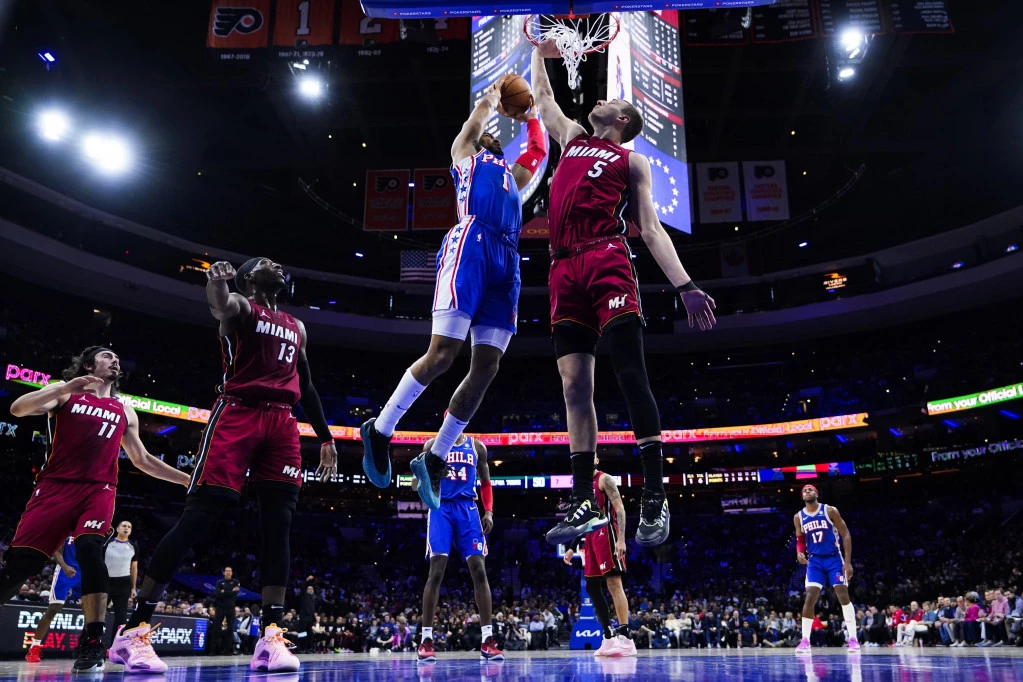 Košarkaši Majami Hita su u gostima posle velike porbe pobedili ekipu Filadelfija Seventisiksersa rezultatom 109:104 (33:33, 27:29, 23:20, 26:22).