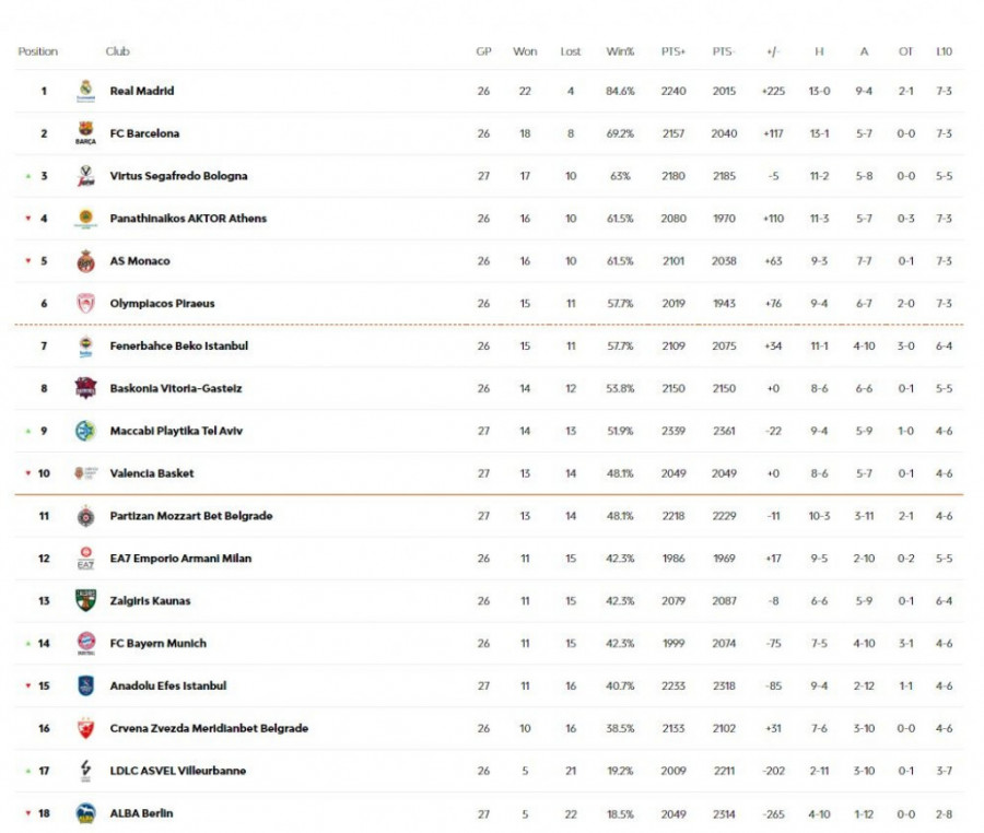 Španci su sada na skoru 13-14, koliko imaju i Obradovićevi izabranici, što znatno olakšava klubu iz Humske plasman bar do razigravanja, ako ne i do samog ulaska u Top 8.