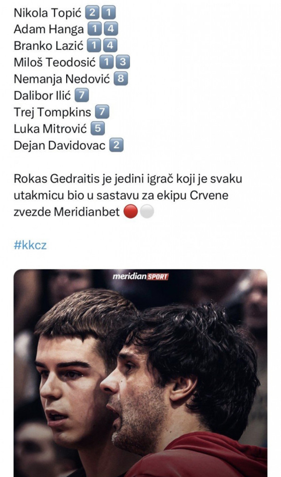 Ipak, treba reći da je samo jedan igrač Zvezde uspeo od starta sezone da na svakom susretu bude u zapisniku, a to je Rokas Gedraitis!