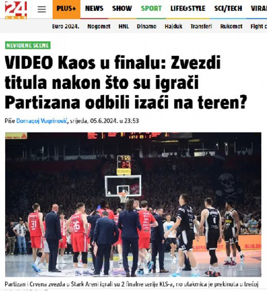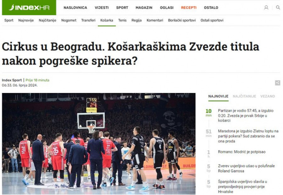 Prema očekivanju, naširoko su u svim dešavanjima iz najveće dvorane na Balkanu izveštavali i hrvatski mediji. Portal Index.hr je pod naslovom "Cirkus u Beogradu" izvestio čitaoce o dešavanjima s meča između Partizana i Crvene zvezde, dok je Jutarnji.hr jedva dočekao da, uz komentar "Totalni haos u Beogradu", obavesti pratioce o događajima u drugoj utakmici finalne serije Košarkaške lige Srbije, a sličnim naslovom je o duelu crno i crveno belih govorio i 24sata.hr.