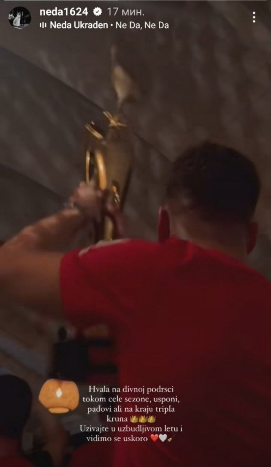 - Hvala na divnoj podršci tokom cele sezone, usponi, padovi, ali na kraju tripla kruna - naipsao je Nedović uz emotikona tri krune i dodao: