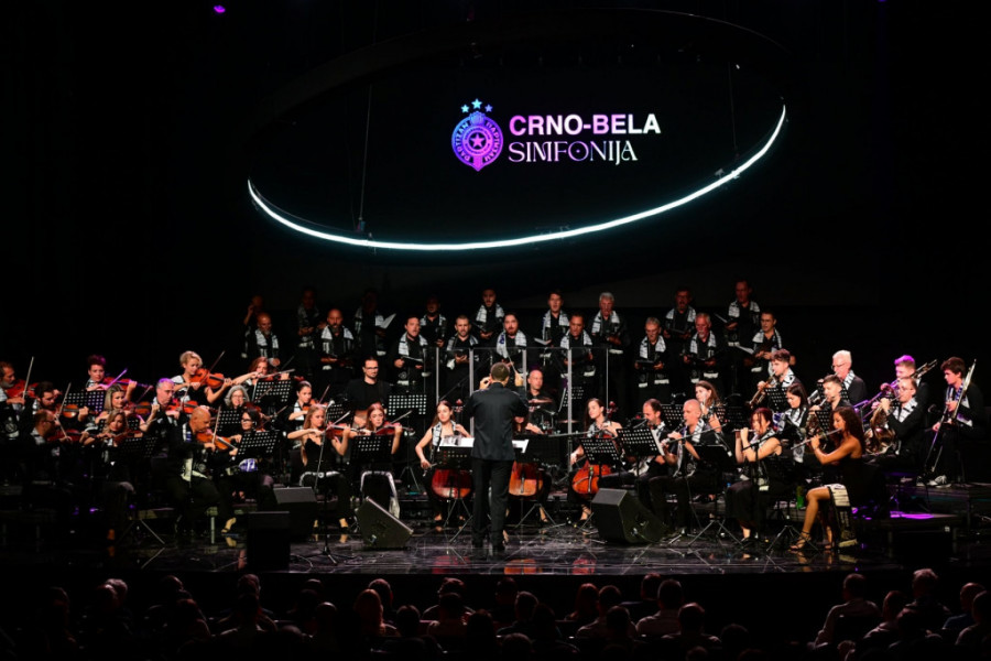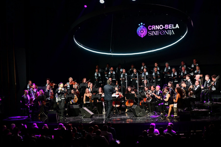 Hor i simfonijski orkestar Zrenjaninske filharmonije izvodi poznate pesme navijača Partizana.