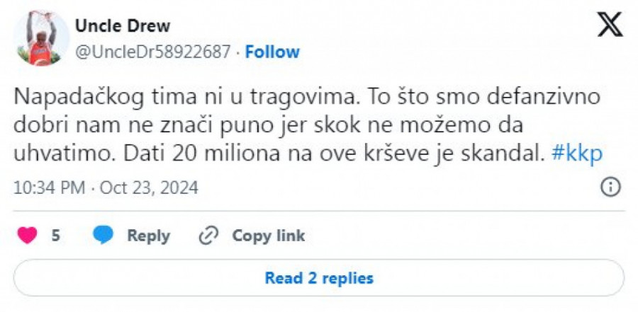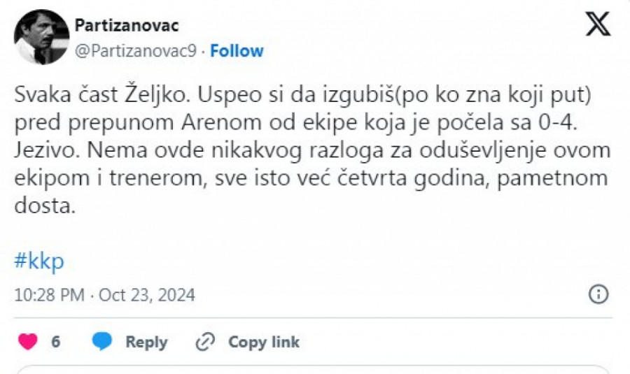 Da podsetimo, najefikasniji igrač Partizana bio je Tajrik Džons sa 20 poena, ali je morao da napusti igru zbog povrede, ostavljajući neizvesnost oko dužine njegove pauze. Ova povreda dodatno je pojačala razočaranje među navijačima, koji su zabrinuti za dalji tok sezone.