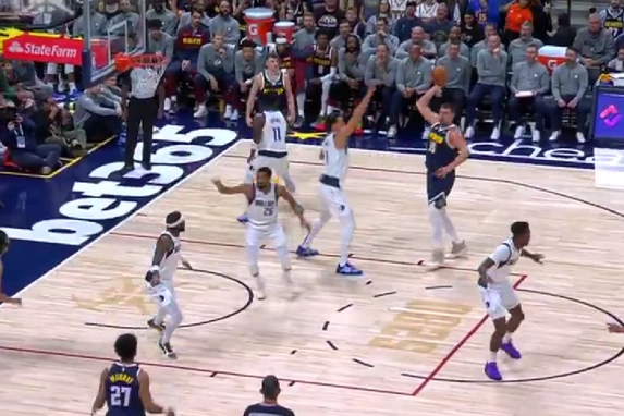 Košarkaši Denvera igraju meč protiv Dalasa u okviru nove runde NBA lige u Koloradu u "Bal Areni". Izabranici Majka Melouna trenutno gube na poluvremenu protiv Maveriksa rezultatom 63:60, a prvi deo je definitivno obeležio potez srpskog centra, Nikole Jokića.