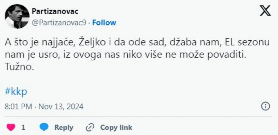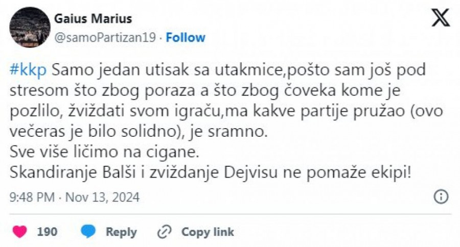 Navijači Partizana su žestoko kritikovali svoje ljubimce nakon novog neuspeha i čini se da pojedinci već gube strpljenje.