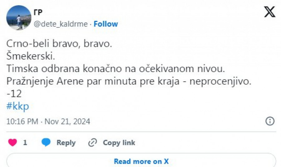 Nakon trijumfa, navijači Partizana su se oglasili na društvenim mrežama, iskazujući svoje oduševljenje. "Crno-beli bravo, bravo. Šmekerski. Timska odbrana konačno na očekivanom nivou. Pražnjenje Arene par minuta pre kraja - neprocenjivo", napisao je jedan od navijača. Takođe, istaknuta je i disciplinovana igra tima tokom cele utakmice, bez izgubljenih lopti u prvom poluvremenu, što je doprinelo njihovoj ubedljivoj pobedi.