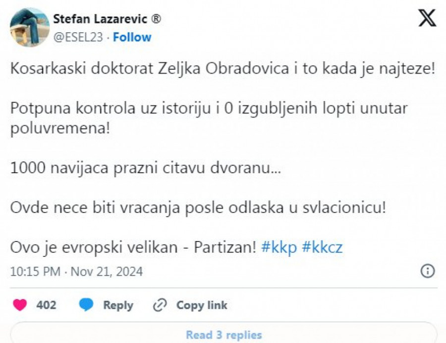 Utakmica protiv Crvene zvezde Meridianbet nije bila obična pobeda za Partizan, već je predstavljala poseban emotivni naboj za navijače. Atmosfera u Beogradskoj areni bila je uzavrela, a čak 1.000 pristalica Partizana pružilo je podršku svom timu.