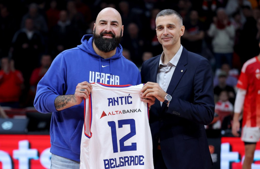 KK Crvena zvezda Meridianbet je pred početak meča 15. kola Evrolige protiv Olimpijakosa poklonila svom nekadašnjem igraču Peri Antiću dres sa brojem 12 koji je nosio dok je branio boje tima sa Malog Kalemegdana.