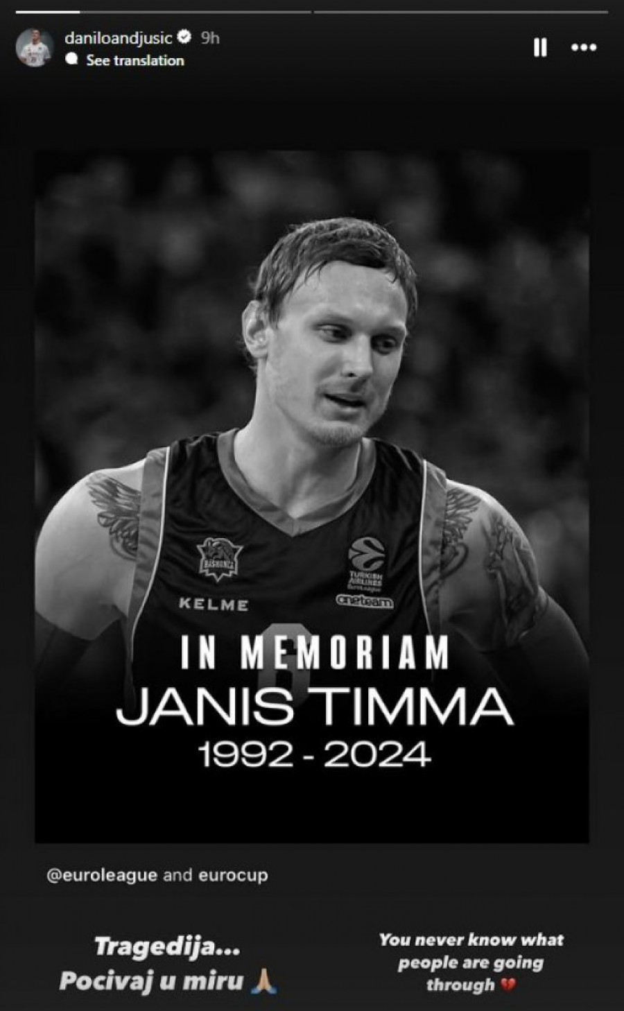 Srpski košarkaš Danilo Anđušić potresen je vestima o smrti nekadašnjeg letonskog igrača Janisa Tima, koji je pronađen mrtav u jednom hostelu u Moskvi.