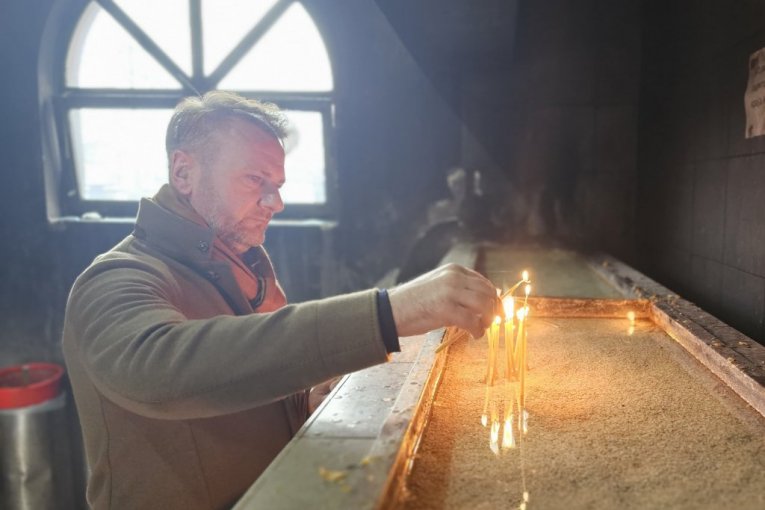 REPORTER REPUBLIKE S OSTOJOM MIJAILOVIĆEM U CRKVI: Zapalio sam sveće za pokoj duše nastradalih, NIJE ZBOG PARTIZANA DAN ŽALOSTI (FOTO GALERIJA)