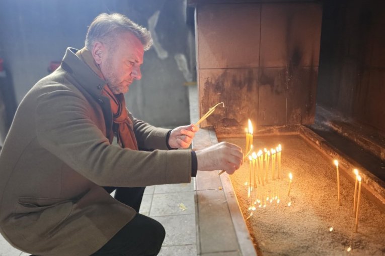 Prvi čovek Partizana jutros je zapalio sveće u Hramu Pokrova Presvete Bogorodice zbog Dana žalosti za osam osoba stradalih u Barajevu.