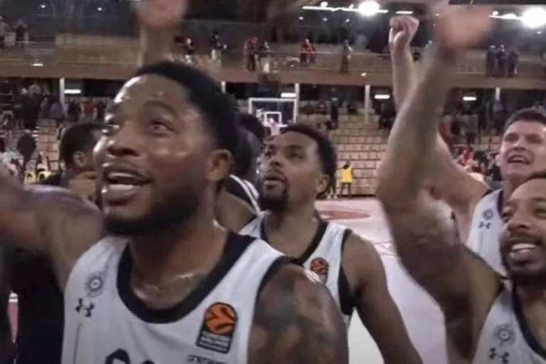 KOŠARKAŠI PARTIZANA ZAPEVALI SA NAVIJAČIMA! Nakon važne pobede, crno-beli napravili slavlje na terenu! (VIDEO)