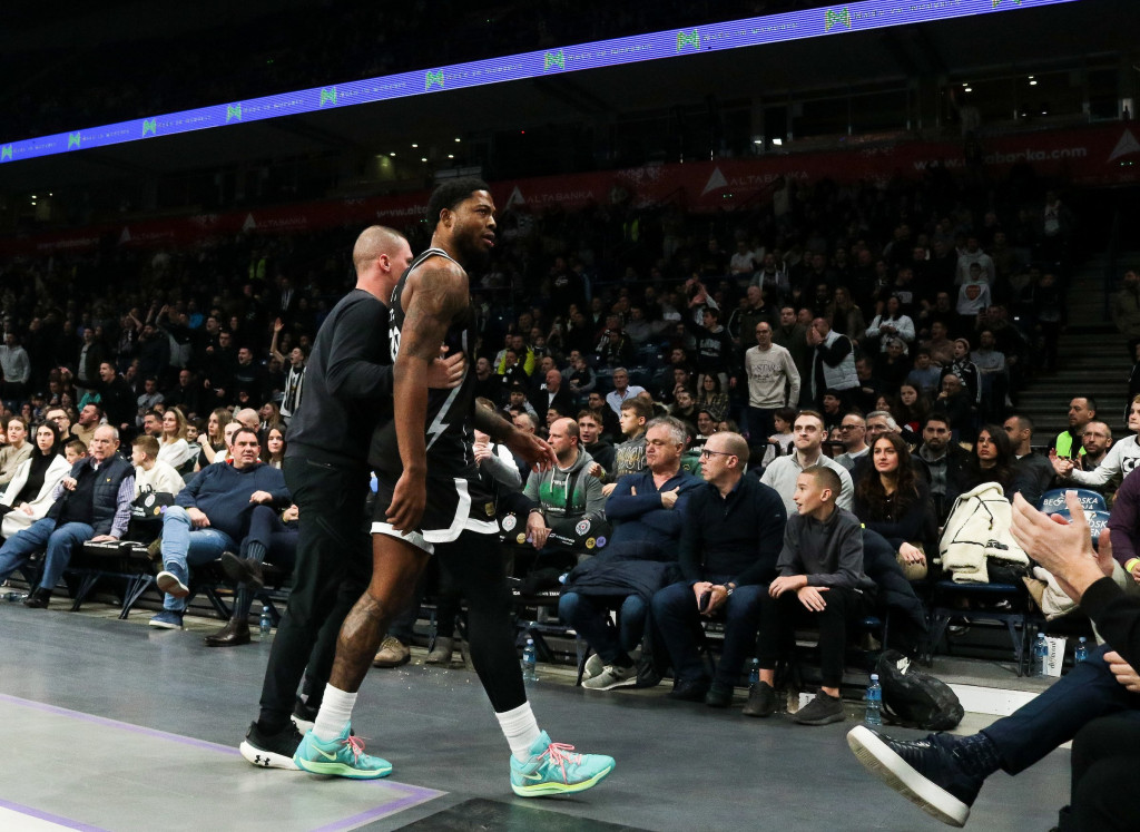Dve tehničke greške za samo dva minuta je dobio američki igrač koji je brani boje Partizana, to mu se nije dopalo pa se upustio u raspravu sa glavnim arbitrom meča. Situacija nije bila nimalo prijatna, a miljenik "grobara" se u jednom momentu sudiji uneo u lice.