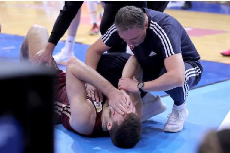 Na jučerašnjoj polufinalnoj utakmici Kupa Radivoja Koraća između Crvene zvezde Meridianbet i FMP-a, desila se nezgoda koja je šokirala navijače i igrače. Centar tima iz Železnika, Ognjen Kuzmić, teško je povređen tokom ove utakmice, ostavljajući sve prisutne u velikoj zabrinutosti. Foto: Starsport