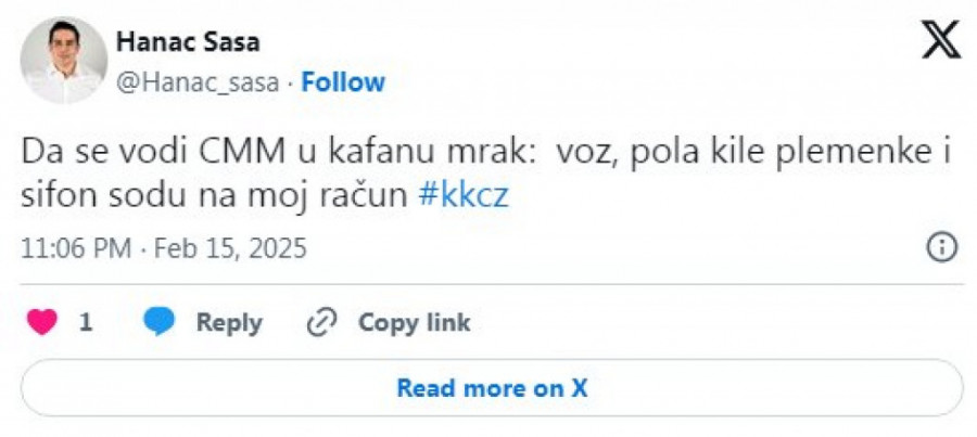 - Da se vodi CMM u kafanu mrak: voz, pola kile plemenke i sifon sodu na moj račun.