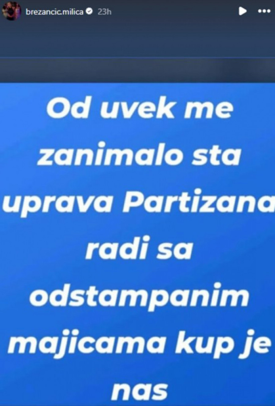 - Oduvek me je zanimalo šta uprava Partizana radi sa odštampanim majicama Kup je naš - napisala je Milica Brežančić.