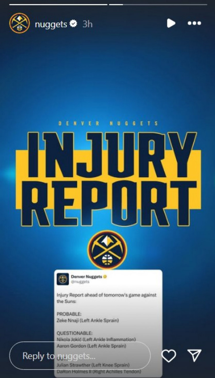 Jasno je da će Nikola Jokić učiniti sve što je u njegovoj moći da bude na parketu protiv Sansa, posebno s obzirom na to da Los Anđeles Lejkersi ozbiljno beže na drugom mestu Zapada. Njegov doprinos ekipi je nezamenljiv, ali postoji rizik da bi dodatno opterećivanje povrede moglo imati dugoročne posledice, što bi za Denver moglo biti katastrofalno. U svetlu trenutne situacije, jasno je da su Jokićeve povrede postale ključno pitanje za tim, a navijači sa nestrpljenjem čekaju da saznaju sudbinu svog omiljenog igrača.