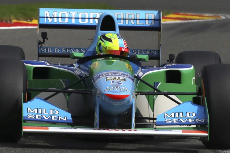 Foto: Tanjug/APMik je vozio nekoliko krugova na stazi Spa Frankoršamp uoči trke za Veliku nagradu Belgije. Šumaher (18) je vozio bolid Benetona B194, kojim je njegov otac 1992. godine osvojio prvu od sedam titula šampiona Formule 1.