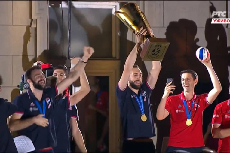 MVP evropskog prvenstva u odbojci Uroš Kovačević bio je među igračima koji su se obratili publici na dočeku naših zlatnih odbojkaša.