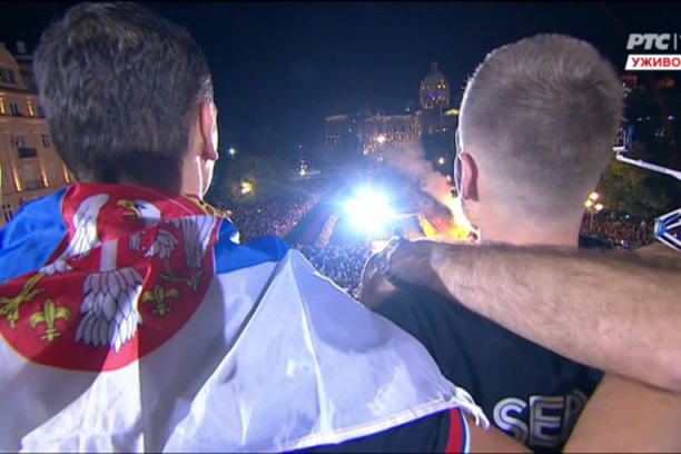 Foto: youtube.com/Jutarnji listPošto su naši odbojkaši održali govore pred okupljenim hiljadama ljudi koji su došli da ih pozdrave, otišli su dalje u slavlje.