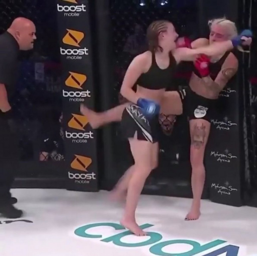 Foto: facebook.com/Rebecca ArcturusUmesto muškarci u krevetu, ovaj put joj je glave došla takođe početnica Elisom Rid, koja ju je uhvatila u takvu mašinu da Rebeka bukvalno nije stigla da postavi gard, a dobila je seriju udaraca u glavu. U nastavku prve runde, koja je trebalo da traje pet minuta, Brigmanova je tek nekoliko puta uspela da se izmakne protivnici i zada po koji udarac. Međutim, kada su pesnice nastavile da sevaju u njeno lice, sudija je morao da proglasi tehnički nokaut i prekine demoliranje u ringu na 13 sekundi do kraja prve od tri predviđene runde.