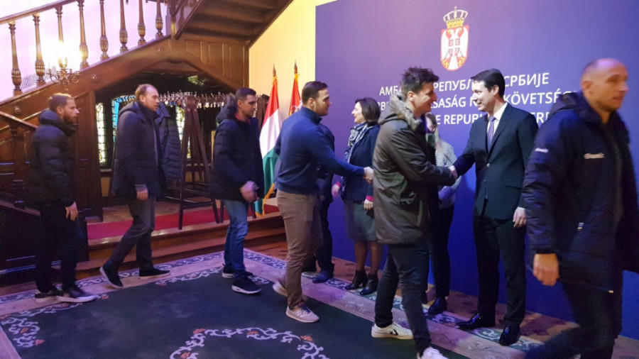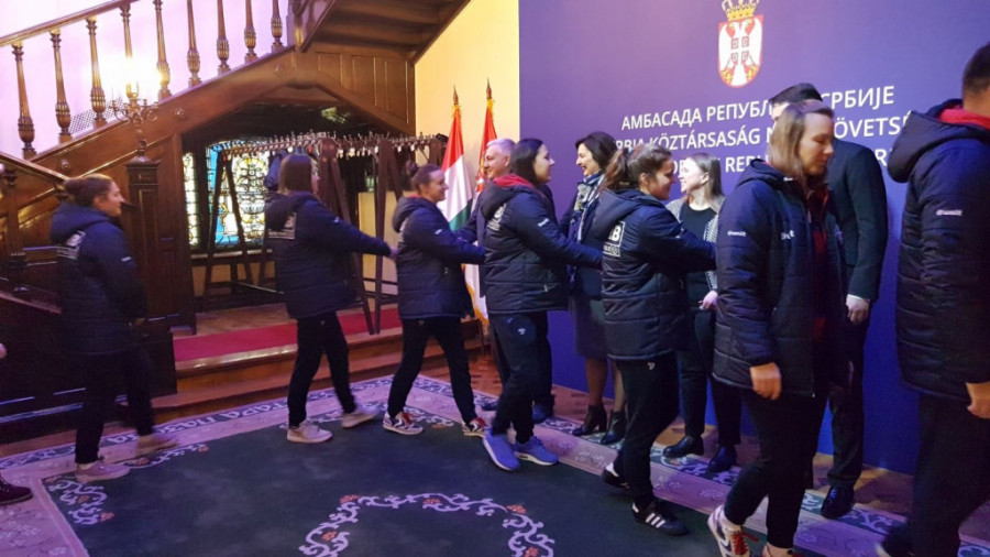 Ambasador Srbije u Budimpešti Ivan Todorov je priredio prijem za vaterpoliste i vaterpolistkinje Srbije.
